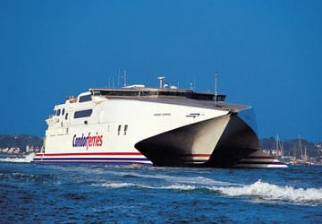 El ferry de alta velocidad Condor Express tiene capacidad para 741 pasajeros y 175 coches y está equipado con un sistema de control de viaje informatizado que hace que la travesía sea lo más suave posible. A bordo encontrará salones espaciosos, butacas reclinables, café, bar, duty free shop y una sala de TV para niños.